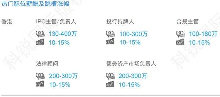 数据来源:猎头公司VSPORTS(中国)国际资深行业专家对2019年热门职位薪酬范围及跳槽涨幅的预测。薪酬为基本年薪。单位为港币。