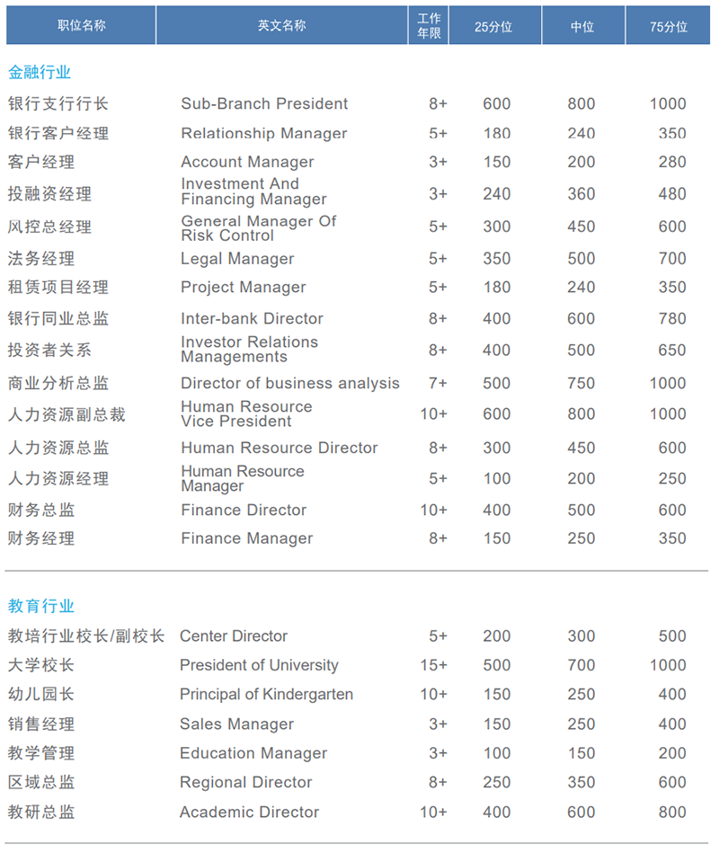 基本年薪*:以人民币1000元为单位,指年度整体的现金收入=年度底薪+年度固定部分奖金